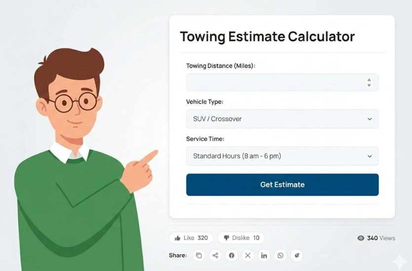 Breaking down on an American highway instantly causes massive stress. Many drivers struggle to estimate exact tow truck costs accurately. Now, you can use our free towing estimate calculator to solve your pricing puzzle perfectly. First, you enter your total required towing distance. Next, you select your specific vehicle type safely.